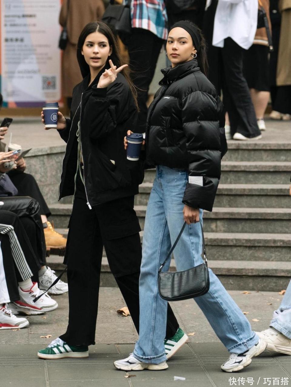 黑+蓝反馈到羽绒服和牛仔裤上,也算是找到了它们的高亢区,不夸张地说任何样式的玄色羽绒服与任何样式的牛仔裤搭配,齐不会踩雷。