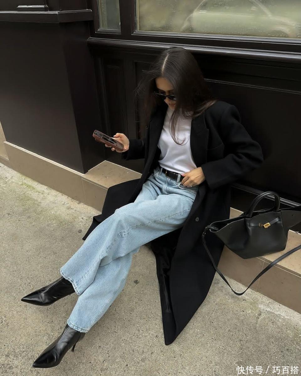 玄色毛呢大衣+蓝色牛仔裤冬天穿外出气场十足,御寒又有气质的毛呢大衣东谈主东谈主可模仿,东谈主手一件的样式成功照抄齐不会踩雷。搭配蓝色阔腿牛仔裤或阔腿喇叭裤女神范十足。