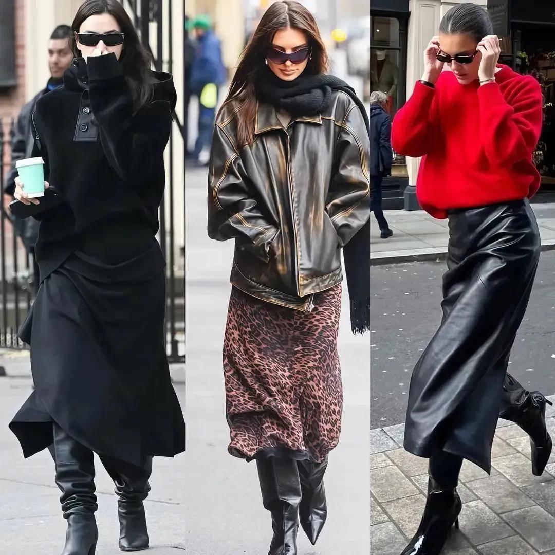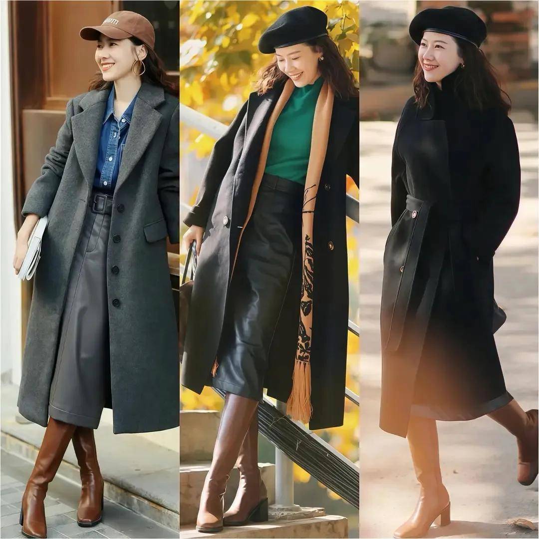 就像上头这位前卫博主,用大衣外衣搭配直筒皮子半身裙,脚穿棕色的骑士靴,头戴贝雷帽或者棒球帽,就能使得我方高等干练通勤娴雅一稔上班逛街约聚或者是外出旅游拍照王人很出片。