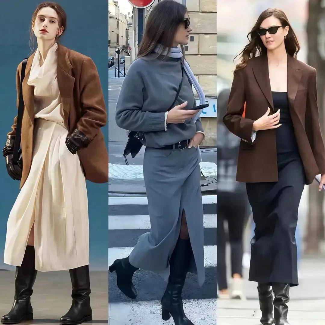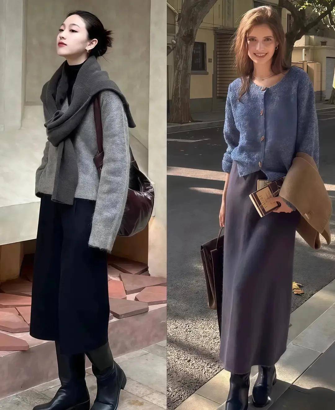 在这阴凉的冬天,咱们不错像上头这位前卫博主雷同,用毛衣开衫内搭诚笃打底衫,加上一条半身裙,再穿骑士靴就够。这么的穿衣打扮缓和多礼又大方,穿去上班逛街约聚王人完全莫得问题拍出来的像片也很出片。