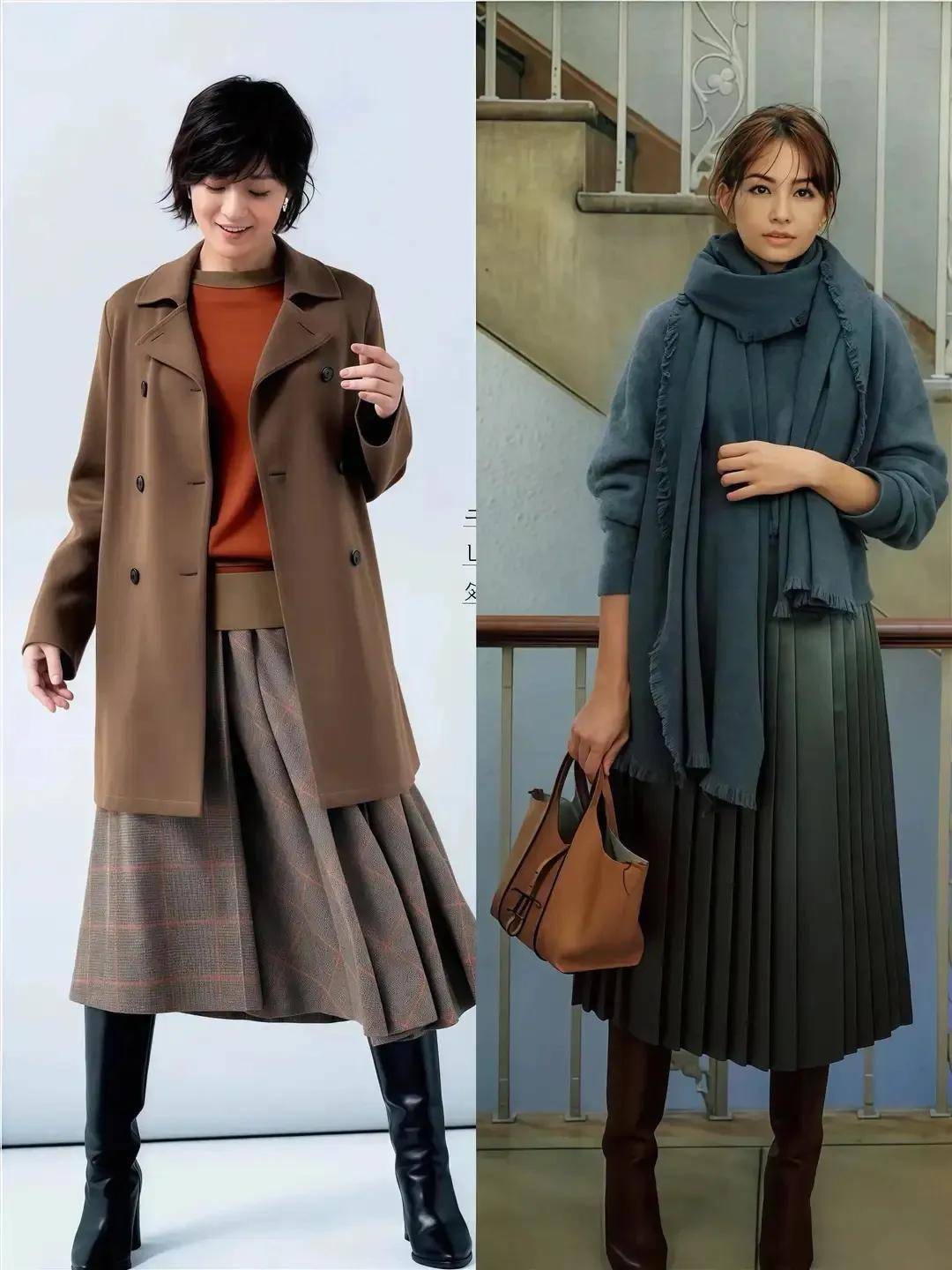 长相偏老到的女性,或者年岁在奔 4 奔 5 的阶段,完全不错采用相比有质感的百褶半身裙,搭配上骑士靴,上衣用御寒餍足的毛衣来单穿或者是四肢内搭,再加上大衣外衣,既御寒又缓和多礼,呈现出了大女主的气质范。