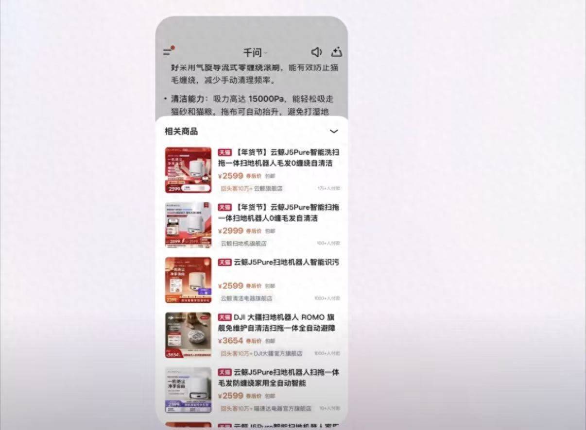 其中千问App接入淘宝,测试“AI购物”功能。用户不错胜利与千问对话获取保举居品,用户胜利不错点击集会购物。
