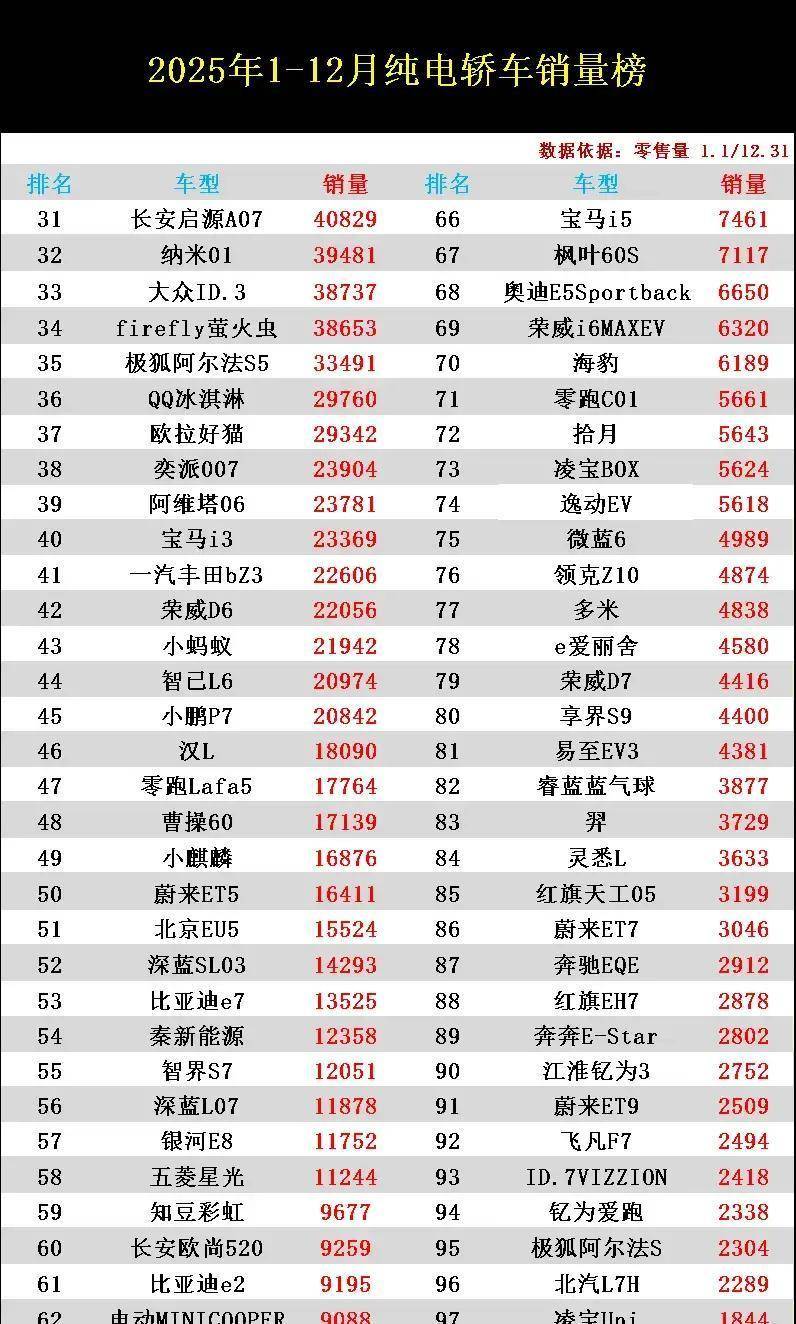 纯电轿车阛阓的竞争已过问尖锐化阶段。据最新统计,2025年全年共有23款车型年销量败坏5万辆大关,其中排行前15的车型销量均高出10万辆。袖珍电动车鸿沟呈现光显头部效应,祥瑞星愿以46.5万辆的王人备上风登顶销量冠军,宏光MINIEV以43.5万辆紧随后来,海鸥、小米SU7、Model 3等车型则稳居第一梯队。花消者大都反馈,这类车型凭借亲民价钱和实用性能,成为阛阓关怀的焦点。