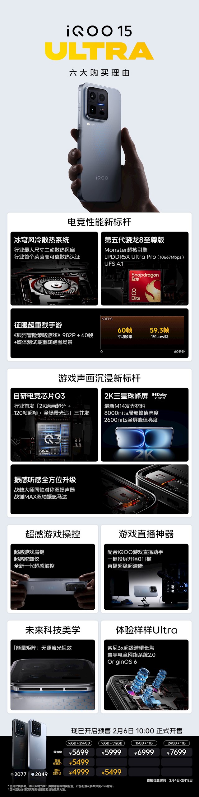 快科技2月6日音信,行动2026年首款性能Ultra,iQOO 15 Ultra将在今天上昼10点进展发售。凭借国度补贴的加抓,这款顶级性能旗舰的笔直价为4999元起。