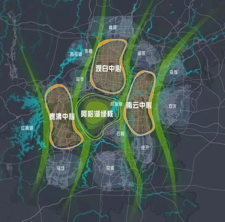从南明、云岩老城的单极彭胀,到不雅山湖新区全面崛起,两大中枢区的成长性趋于饱和,此时,站在贵阳城市进化的技术轴上,阿哈湖被赋予了全新的历史变装。