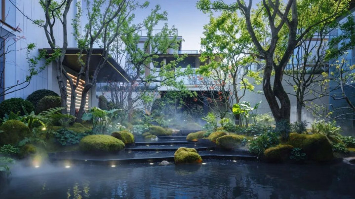 41颗自然老山石,跳跃13座四山五岳而来,每一块都保抓着原始的进取张力。9株乌桕与斜飘冬青经园艺师仔细酌量落位,疏密之间,便有了山水的筋骨与气韵。