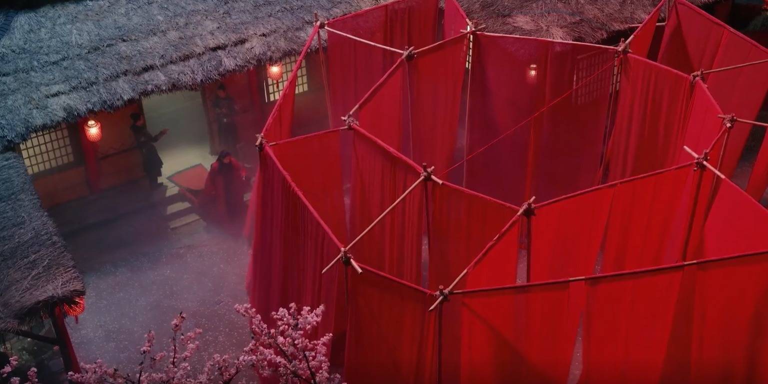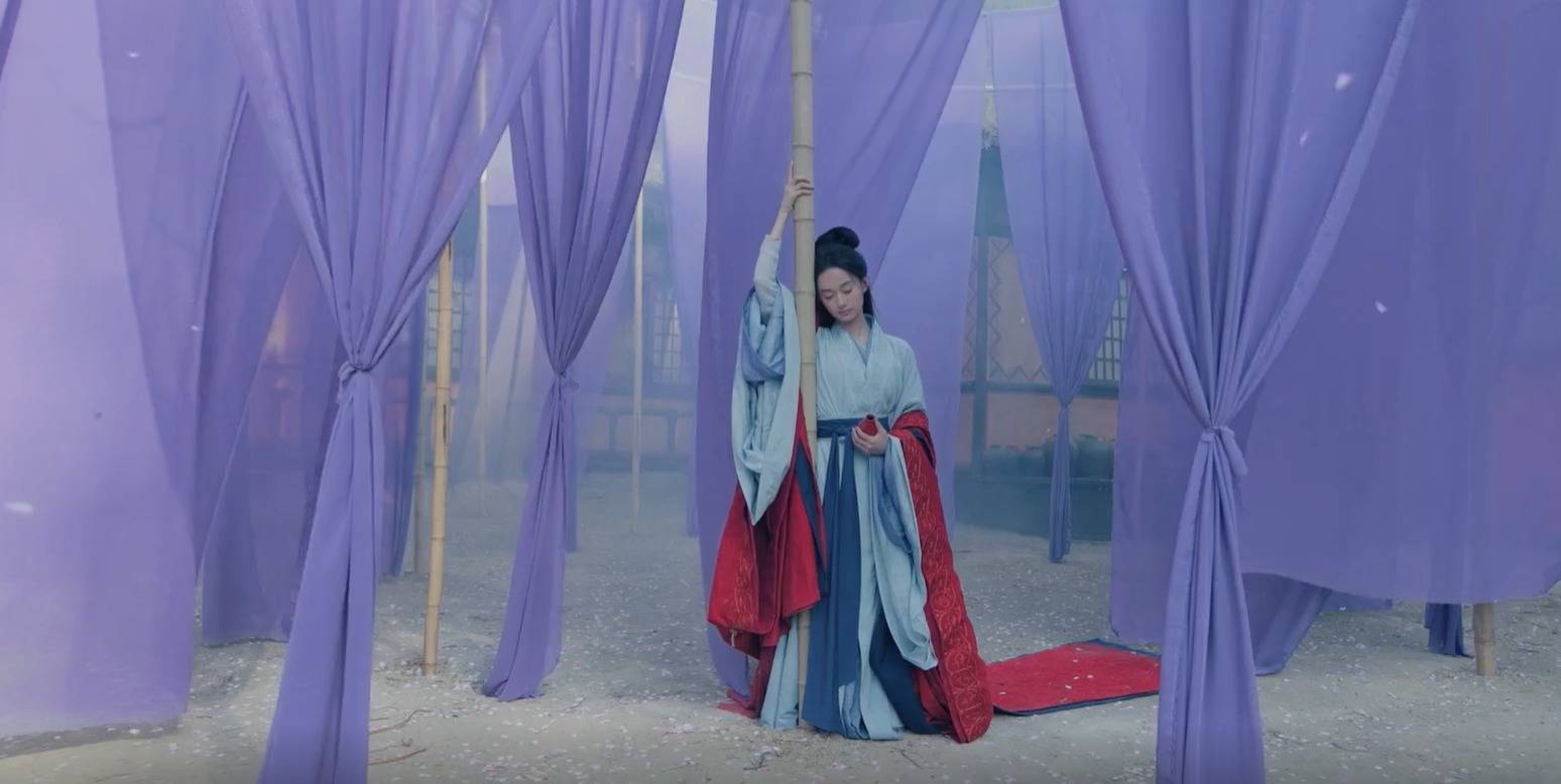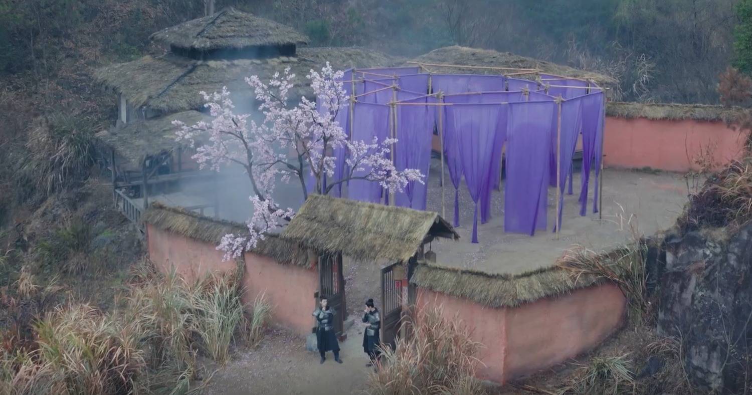 第二集,夏梦上演的公主赵淳儿登场,她那时被幽禁在破茅庐,看着能够又残败,可便是这样一间破茅庐,外面却架了一个紫色的布棚子。