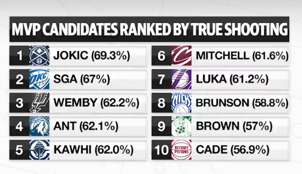 MVP候选东谈主真正掷中率: