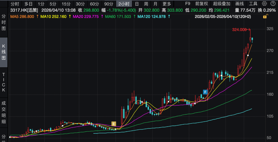 4月10日,迅策(03317.HK)盘中一度高涨12.5%,市值冲破1000亿港元。