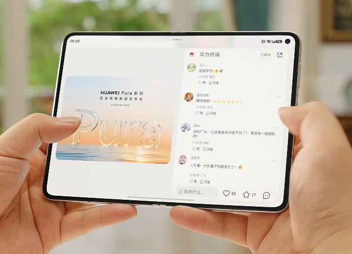 Pura X Max和iPhone Fold的尺寸、大小,基本处于斡旋水平。无谓等iPhone Fold了,Pura X Max随即就来。