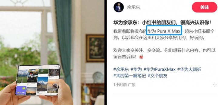 近期,余承东入驻了小红书,发布的首条本色,就负责揭晓了行将发布的新机的称号,Pura系列的首款Max:Pura X Max。